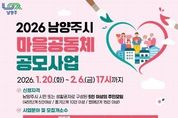 동네방네 김형규 기자 | 남양주시는 1월 20일부터 2월 6일까지 ‘2026년 마을공동체 공모사업’참여 공동체를 공개 모집한다. 이번 공모는 주민의 자발적 참여와 소통을 바탕으로 지역 문제를 해결하고 공동체 문화를 확산하기 위해 마련됐다. 모집 분야는 △나눔활동 △정약용활동 △마을돌봄활동 △자율주제활동 등 4개다. 특히 ‘정약용활동’은 ‘정약용의 도시’라는 시의 정체성을 반영한 분야로, 지난해에 이어 지속 운영된다. 새롭게 신설된 ‘마을돌봄활동’은 사회적 고립 예방을 위한 이웃 간 관계 형성과 서로돌봄 활동을 지원하는 데 중점을 둔다. 사업 참여 공동체는 성장 단계에 따라 △씨앗 △줄기 △열매단계로 구분된다. 씨앗단계는 5인 이상 주민 모임이 신청할 수 있으며, 선정 시 400만 원이 지원된다. 줄기단계는 10인 이상 주민 모임으로 1회 이상 참여 경험이 있어야 하며, 600만 원을 지원한다. 열매단계는 15인 이상 주민 모임으로 2회 이상 참여 경험이 있어야 하며, 800만 원을 지원받게 된다. 신청은 1월 20일부터 2월 6일 오후 5시까지 시청 자치협력과 공동체팀 방문 또는 전자우편을 통해 접