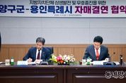 동네방네 김형규 기자 | 용인특례시는 6일 강원특별자치도 양구군과 자매결연을 하고, 두 도시의 교류와 발전을 위해 적극 협력하기로 했다. 이상일 시장은 이날 양구군청 중회의실에서 서흥원 군수와 두 도시 간 우의를 증진하고 상호 교류‧협력하는 데 합의하고, 자매결연 협약서에 서명했다. 이번 협약으로 양구군은 시의 16번째 자매도시가 됐다. 이상일 시장은 “양구는 문화예술 분야에서 과감한 투자를 하고 있고, 양구군립박수근미술관은 2023년 양구 출신 박수근 화백의 1956년 작품 ‘가족’을 품었는데 두 도시가 앞으로 가족처럼 잘 지냈으면 한다”며 “이번 협약을 계기로 양 도시가 협력을 강화해서 함께 발전하길 기원한다”고 말했다. 이 시장은 “양구군과 용인시의 훌륭한 농산물들이 양 도시에서 소비하도록 서로 홍보하는 등 협조 체계를 갖추는 노력도 기울이자"라며 "양구에는 테니스장, 축구장 등 스포츠 시설이 아주 잘 갖춰져 있는 만큼 용인의 스포츠팀이나 단체들이 양구를 찾아 훈련하는 등 체육 분야의 협력도 도모하면 좋겠다"고 했다. 서흥원 군수는 “용인의 인프라와 비전이 대한민국 지방자치단체 중