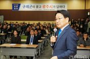 동네방네 김형규 기자 | 광주광역시는 6일 구례군 백두대간생태교육장 세미나실에서 ‘광주전남 통합 구례군 상생토크’를 열고, 구례 발전 전략과 통합 이후 변화에 대해 구례군민들과 소통했다. 이날 상생토크는 전남 시·군을 순회하며 진행 중인 열 번째 자리로, 지리산과 섬진강 등 구례군의 천혜 생태 자원과 천년문화자산을 활용한 광주·전남의 균형발전 방향을 모색하기 위해 마련됐다. 이날 행사에는 강기정 광주시장을 비롯해 오수미 구례군 부군수, 읍면 주민대표, 구례군민 등 120여 명이 참석해 광주전남 통합 추진에 대한 높은 관심을 보였다. 강기정 시장은 광주전남 통합 추진 상황과 향후 일정, 통합에 대한 정부 특전(인센티브) 등을 설명하며 통합의 추진 의지를 밝혔다. 이어 구례군과 관련된 특별법안 특례조항으로 ▲생태관광 활성화 지원 ▲문화유산 보존 및 활용 ▲지역 교통 기반시설 개선 등을 소개했다. 특히 구례의 풍부한 자연환경과 문화유산을 기반으로 생태관광과 문화산업을 육성하고, 광주와 협력을 통해 지역 발전을 이끌겠다는 구상을 밝혔다. 강 시장은 ▲전라선 고속화 등 광역교통망 확충 ▲유기농산업 등 농·수
