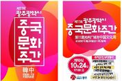 동네방네 김형규 기자 | 광주광역시는 24일부터 30일까지 7일간 ‘제11회 중국문화주간’ 행사를 다채롭게 진행한다. 24일 오후 5시 광주차이나센터에서 열리는 개막식에는 강기정 시장을 비롯해 구징치 주광주중국총영사, 김병내 남구청장, 박상철 호남대 총장 등이 참석해 중국문화주간 선포를 함께 축하할 예정이다. 개막식 식전 행사에서는 노영민 전 주중국대한민국 대사가 ‘글로벌 대전환의 시대, 중국은 어디로 가는가’를 주제로 특별강연을 진행해 중국의 발전방향과 세계 무역의 흐름을 짚는다. 올해로 11회째를 맞는 중국문화주간에는 중국요리대회(대상 시장상), 중국언어문화경진대회(대상 시장상), 사진공모전(대상 총영사상), 카빙전시(대상 총영사상), 사회관계망서비스(SNS) 사진 영상 콘테스트 등 다양한 프로그램이 마련됐다. 특히 올해는 CGV 상무에서 ‘차이나 무비 나잇’을 운영해 첨밀밀, 화양연화, 중경삼림, 패왕별희 등 국내에서도 큰 사랑을 받았던 중국 명작 영화를 상영한다. 국립아시아문화전당에서는 한국과 중국의 음식문화, 전통의상, 공예체험 부스를 운영하는 한중 문화체험 행사도 열린다. &