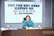 동네방네 김형규 기자 | 김천시는 2025년 10월 26일, 황금정수장에서 생산‧공급하는 수돗물 내에서 깔다구 유충이 발견(10월 24일 최종 판정)됨에 따라, 시민의 수돗물 신뢰를 지키기 위해 즉시 ‘비상대책본부’를 구성하고 긴급 대책회의를 개최했다고 밝혔다. 이번 비상대책본부는 시장(본부장)을 중심으로 상하수도과, 맑은물사업소, 안전재난과 등 관련 부서 및 외부 수질전문가로 구성됐으며, 유충 제거 대책 방안과 발생 원인 규명을 최우선 과제로 추진하고 있다. 이날 회의에서는 △유충 발생 지점의 정밀 조사 및 즉시 차단 △정수장 시설 전체에 대한 긴급 점검 △배·급수 계통 내 수질 검사 강화 △현재 진행 중인 지역축제 급수대책 등이 논의됐다. 김천시는 현재 황금정수장의 여과지 및 정수지 청소, 정수장 공정별 운영 주기 단축, 염소 주입 강화, 방충시설 보강 등 위생 강화 작업을 즉시 시행하고 있으며, 주민 불안 해소를 위하여 주민공지 및 예상질문답변서를 시청 홈페이지에 공개했다. 배낙호 김천시장은 “시민의 건강과 안전이 최우선인 만큼, 가용한 모든 행정력을 동원하여 유충 차단함으로써 시민들에게 빠른