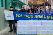 동네방네 김형규 기자 | 봉화로타리클럽(회장 원준석)은 11월 25일 (사)봉화군종합자원봉사센터(이사장 김병남)에 김장김치 50박스(150kg)을 전달했다. 이번 기탁은 겨울철을 앞두고 지역 내 취약계층과 소외이웃을 지원하기 위하여 마련됐다. 이날 김장 나누기 봉사에서는 봉화로타리클럽 회원 40여명이 참여한 가운데 재료 손질부터 절임, 양념 버무리기, 포장까지 직접 진행했으며, 준비된 김장김치는 거동불편 어르신 등 돌봄이 필요한 가구에 전달될 예정이다. 원준석 봉화로타리클럽 회장은 “추운 겨울을 대비해 도움이 필요한 분들에게 작은 힘이 되고자 회원들과 정성을 모았으며, 앞으로도 지역과 함께하는 나눔활동을 이어가겠다”고 밝혔다. 김병남 (사)봉화군종합자원봉사센터 이사장은 “정성을 담아 김장을 준비해주신 봉화로타리클럽 회원들게 감사드리며, 도움이 필요한 이웃들에게 전달해 드리겠다”고 전했다.