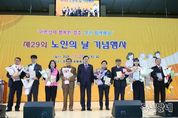 동네방네 김형규 기자 | 경주시는 지난 27일, 경주실내체육관에서 ‘제29회 노인의 날 기념식’을 열고 국가와 지역사회 발전에 기여해온 어르신들의 노고에 감사의 뜻을 전했다. 노인의 날은 '노인복지법'에 따라 매년 10월 2일로 지정된 법정기념일로, 경주시는 지역 어르신을 격려하고 공경 문화를 확산하기 위해 매년 기념행사를 개최하고 있다. 올해 기념식은 경주시가 주최하고 (사)대한노인회 경주시지회(회장 구승회)가 주관했으며, 주낙영 경주시장, 이동협 경주시의회 의장, 구승회 지회장을 비롯해 지역 어르신 2,000여 명이 참여한 가운데 성황리에 진행됐다. 본행사는 노인강령 낭독, 노인복지 증진 유공자 및 모범 어르신 표창, 축사, 축하공연 순으로 이어졌다. 이날 표창은 노인복지 향상과 지역사회 발전을 위해 헌신해 온 어르신들의 공로를 기리기 위해 수여했다. 구승회 대한노인회 경주시지회장은 “어르신들의 지혜와 헌신이 오늘의 경주를 만들었다”며, “서로 배려하고 존중하는 노인 문화를 확산해 나가겠다”고 말했다. 주낙영 경주시장은 “2025 APEC 정상회의의 성공적인 개최 과정에