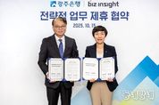 동네방네 김형규 기자 | 광주은행은 15일, 라이프케어 전문기업 비즈인사이트(대표 김상수)와 전략적 업무 제휴 협약을 체결했다고 밝혔다. 이번 협약은 양사가 긴밀한 협력 체계를 바탕으로 금융과 라이프케어를 결합한 전용 상품 및 서비스 개발과 공동 마케팅 추진 등 다각적인 제휴를 통해 새로운 디지털 금융 서비스를 선보이기 위한 목적이다. 이날 협약식에는 광주은행 변미경 디지털본부 부행장과 비즈인사이트 김상수 대표가 참석했으며, 변화하는 디지털 환경 속에서 양사가 상호 시너지를 창출하고, 고객 중심의 혁신 서비스를 지속적으로 확대해 나가겠다는 뜻을 모았다. 특히, 양사는 이번 제휴를 통해 전용 상품 및 서비스 개발, 공동 마케팅 등 차별화된 협력 방안을 추진하여, 디지털 전환이 가속화되는 환경 속에서 고객 만족도를 높이는데 주력한다는 방침이다. 한편, 광주은행과 비즈인사이트는 지난 9월 25일부터 ‘와이즈한 웰니스 라이프의 시작’ 이벤트를 진행 중이다. 해당 이벤트는 광주은행 계좌로 급여 또는 연금을 신규 수령하거나, 기존 타행에서 광주은행으로 입금 계좌를 변경한 고객을 대상으로 진행되며, 비즈인사이