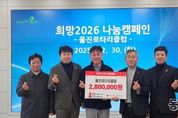 동네방네 김형규 기자 | 울진군은 지난해 12월 30일 울진로타리클럽(회장 남상천)으로부터 성금 280만 원을 기탁받았다. 이날 기탁받은 성금은 경북사회복지공동모금회를 통해 울진군 관내 취약계층과 사회복지시설을 위해 사용될 예정이다. 남상천 울진로타리클럽 회장은 “작은 정성이지만 지역의 어려운 이웃들에게 도움이 되기를 바라는 마음으로 성금을 전달하게 됐다”며 “앞으로도 지역사회와 함께하는 다양한 봉사와 나눔 활동을 지속해 나가겠다”라고 전했다. 울진군 관계자는 “매년 꾸준한 나눔과 봉사로 지역사회에 큰 힘이 되어주시는 울진로타리클럽 회원 여러분께 깊이 감사드린다”며 “기탁해 주신 성금은 도움이 필요한 이웃들에게 소중히 전달하겠다”라고 밝혔다. 한편, 울진로타리클럽은 평소에도 봉사활동과 후원 등 다양한 사회공헌 활동을 통해 지역사회 발전과 이웃사랑 실천에 앞장서고 있다.