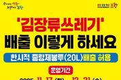 동네방네 김형규 기자 | 포항시는 김장철을 맞아 일시적으로 다량 배출되는 김장부산물 쓰레기를 원활히 처리하기 위해 ‘김장부산물쓰레기 특별 수거기간’을 운영한다고 밝혔다. 특별 수거기간은 11월 17일부터 12월 31일까지 약 6주간 진행되며, 이 기간 동안 발생하는 김장부산물 쓰레기는 한시적으로 종량제봉투 20L에 배출이 허용된다. 시는 유동인구가 많은 읍·면·동 주요 지역에 현수막을 설치해 특별 수거기간을 홍보하고, 각 행정복지센터를 통해 올바른 김장쓰레기 배출 방법과 관리 기준을 시민들에게 안내하고 있다. 음식물쓰레기 배출대상은 배추·무 등 김장으로 나오는 쓰레기로 최대한 물기 및 이물질 제거 후 일반쓰레기와 별도로 배출하여야 한다. 또한 일반쓰레기 배출대상은 배추겉잎, 밑동, 양파·마늘껍질, 생강 및 흙이 묻은 식재료로 종량제봉투로 배출해야 한다. 포항시 관계자는 “김장철에는 부산물쓰레기가 짧은 기간에 집중적으로 발생하는 만큼 특별 수거기간을 운영하게 됐다”며 “올바른 배출 방법을 적극적으로 안내해 부산물쓰레기 수거에 차질이 없도록 최선을 다하겠다”고 말했다.