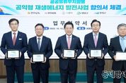 동네방네 김형규 기자 | 전라남도는 15일 새정부의 재생에너지 대전환 기조와 재생에너지 보급 확대 정책에 따라 나주시, 영광군, 영암군, 한전KDN과 탄소중립 실현·에너지 기본소득 실현을 위한 ‘공익형 재생에너지 발전사업’ 업무협약을 했다고 밝혔다. 이날 협약식은 김영록 전남도지사, 윤병태 나주시장, 우승희 영암군수, 장세일 영광군수, 박상형 한전KDN 대표이사가 참석한 가운데 진행됐다. 공익형 재생에너지 발전사업은 공공유휴부지에 태양광 발전설비를 설치해 발생하는 발전 수익을 도민과 공유하는 형태로, 에너지 자립과 이익 환원을 핵심으로 한다. 이번 업무협약을 통해 전남도와 지자체는 공공유휴부지 발굴 및 제공, 발전 이익의 도민 공유를 위한 계획 수립 등 행정적 지원을 담당하며, 한전KDN은 신재생 에너지 통합관리를 위한 ICT 솔루션 구축 등 사업화를 추진한다. 이번 협약은 새정부의 경제성장전략 중 하나인 재생에너지 공급 확대를 통한 에너지 대전환과 국정과제 중 하나인 지역 균형성장 기반 마련을 위한 햇빛·바람 연금 확대와 맞물려 더욱 의미가 크다. 정부는 제11차 전력수급기본계획에 따