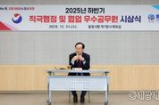 동네방네 김형규 기자 | 통영시는 24일 제1청사 회의실에서 2025년 하반기 적극행정 및 협업 우수공무원 시상식을 개최하고,적극적인 문제 해결과 부서 간 협업을 통해 우수한 성과를 창출한 공무원과 부서를 시상했다. 이번 시상식은 창의적이고 도전적인 적극행정 실천사례와 부서 간 협업을 통해 행정 성과를 창출한 우수공무원 및 부서를 격려하고, 조직 전반에 적극행정과 협업 문화를 확산하기 위해 마련됐다. 시는 앞서 공모를 통해 현장 중심의 적극행정 사례와 기관·부서 간 협업을 통해 시민 체감도를 높인 다양한 사례를 발굴했으며, 내부 실무심사를 거쳐 온라인 국민투표와 인사위원회 심사를 병행해 시민 공감도와 전문성을 모두 반영해 최종 수상자를 선정했다. 올 하반기에는 ▲복합해양레저관광도시 조성사업 공모 선정 ▲통영대교 시설물 개선사업 ▲국내 최초 수산부산물 자원화시설 운영 ▲욕지 작은학교 살리기 사업 ▲경남 최초, 섬 숲 경관복원 사업 ▲시민에게 다가가는 도로명주소 실생활 홍보 ▲통영한산대첩축제 고유제 한산도 봉행 ▲공공정보 검색특화 서비스 도내 최초 도입 ▲시민오케스트라로 만든 문화 혁신이 적극행정 우수사례로 선정됐