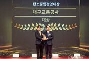 동네방네 김형규 기자 | 대구교통공사는 지난 11월 20일, 한국경영인증원이 주관한 ‘제24회 글로벌스탠더드경영대상(Global Standard Management Awards)’에서 ‘탄소중립경영대상’을 수상했다. 글로벌스탠더드경영대상은 탄소중립, 품질경영, 그린경영 등 9개 경영 테마별로 우수한 실적을 보인 기관·기업에 수여하는 상이다. 공사는 도시철도 운영 전반에서 체계적 에너지 관리와 온실가스 감축 성과를 인정받아 수상하게 됐다. 공사는 2023년부터 ‘절전 태스크포스팀(T/F팀)’을 운영하며 16개 핵심과제를 발굴·추진해 왔다. T/F팀은 조명 소등 등 단순한 절전 방식을 넘어 ▸역사 미세먼지 농도 연동 공조설비 운영 ▸승객 혼잡도 빅데이터 분석을 통한 열차운행 조정 ▸에스컬레이터 가동시간 재산정 등스마트 도시철도 운영 기술을 적극 도입했다. 그 결과, 온실가스 6만 2천 톤 감축, 연간 15억 원 규모의 전기요금 절감이라는 가시적인 성과를 거뒀다. 현재는 차량기지의 주차장, 검수고 지붕 등 유휴부지를 활용한 발전용량 4MW급 태양광발전 임대 사업도 추진 중이다. 해당 사업이