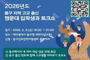 동네방네 김형규 기자 | 대구 동구청은 오는 6일 오후 6시 30분, 동구청 4층 대회의실에서 관내 학생 및 학부모를 대상으로 ‘2026 내 자녀 대입 성공 전략 특강 및 멘토와 함께 고교생활 미리보기 토크쇼’를 개최한다. 이번 행사는 변화하는 대학 입시 환경을 미리 이해하고, 자신의 진로와 학습 방향을 주도적으로 설계할 수 있도록 지원하기 위해 마련됐으며, 특히 최신 대입 제도와 고교 생활 전반에 대한 이해를 높이는 실질적인 정보를 제공하는 데 중점을 뒀다. 1부 특강에서는 동구진로진학지원센터장이 강연자로 나서, 최근 대입 제도의 주요 변화와 함께 학생 수준과 성향에 맞는 학습 전략, 진로 설계 방법 등을 강연한다. 이어지는 2부 토크쇼에서는 동구 지역 출신 예비 대학생 멘토 5명이 참여해 고등학교 시절의 학습 경험, 입시 준비 과정 등을 솔직하게 공유하며, 학생들이 궁금해하는 고교생활 전반에 대해 자유로운 소통의 시간을 갖는다. 윤석준 동구청장은 “입시는 학생 개개인의 적성과 방향을 함께 고민하는 과정”이라며, “이번 행사가 학생들에게 진로를 구체화하는 실질적인 길잡이가 되기를 기대한다. 동구청