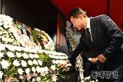 동네방네 김형규 기자 | 오세훈 서울시장은 11일 15시 30분 중구 서울영화센터 1층에 마련된 원로배우 고(故) 김지미 추모 공간을 방문해 애도의 뜻을 표했다. 배우 김지미는 영화 '황혼열차'(1957)로 데뷔했으며 60여 년간 '토지'(1974), '비구니'(1984), '길소뜸'(1985) 등 700여 편에 출연했다. 이 외에도 파나마국제영화제와 대종상에서 여우주연상을 수상, 지난 2010년 '영화인 명예의 전당'에 헌액되는 등 영화사에 굵은 족적을 남겼다. 오 시장은 서울영화센터 1층 미디어월에서 상영되는 배우 김지미의 추모 영상을 시청하며 고인의 영화 인생을 되새겼다. 이어 헌화 후 방명록에 “한국 영화계의 큰 별 김지미 선생님의 명복을 빕니다”라고 남기며 애도의 마음을 전했다. 한편 한국영화인협회는 오는 14일(일)까지 서울영화센터 1층에 추모 공간을 운영한다.