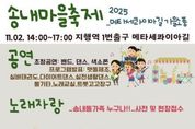동네방네 김형규 기자 | 동두천시 송내동 주민자치위원회는 오는 11월 2일 오후 2시부터 지행역 1번 출구 메타세콰이아길에서 ‘2025 송내마을축제’를 개최한다고 밝혔다. 이번 축제는 주민자치센터 프로그램 수강생을 비롯해 지역 학교, 동아리, 학원 등 다양한 주민이 참여해 주민자치 활성화와 지역 문화·예술 교류의 장을 마련하고자 기획됐다. 행사 당일에는 송내동 주민 노래자랑, 주민자치 프로그램 발표회·전시회, 초청공연, 체험부스, 벼룩시장, 먹거리 마당 등 다채로운 프로그램이 진행된다. 특히 주민이 직접 참여하는 노래자랑과 맷돌체조, 트롯고고장구, 실버태권도 등 7개 팀의 프로그램 발표회가 마련돼, 지역 주민들이 그동안 갈고닦은 실력을 선보일 예정이다. 또한 도자기 만들기, 팽이 꾸미기, 만년도장 만들기 등 가족 단위로 즐길 수 있는 체험부스도 함께 운영된다. 이번 축제는 송내동 주민의 화합과 자긍심을 높이는 것은 물론, 주민자치센터 프로그램 홍보와 신규 수강생 유치에도 도움이 될 것으로 기대된다. 아울러 지역 소상공인과 시민이 함께 참여하는 벼룩시장도 열려 지역경제 활성화에도 기여할 전망이다. 행