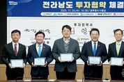 동네방네 김형규 기자 | 전라남도는 26일 동부청사에서 여수그린에너지㈜, ㈜한화 글로벌부문, ㈜LX MMA 등과 1조 2천441억 원, 고용 창출 147명 규모의 투자협약을 했다. 협약식에는 김영록 전남도지사와 한상훈 여수그린에너지㈜ 대표이사, 김태욱 ㈜한화 글로벌부문 머티어리얼(Material)사업부장, 김창호 ㈜엘엑스 엠엠에이(LX MMA) 공장장, 정기명 여수시장 등이 참석했다. 전남도는 이번 투자가 여수국가산단의 범용 석유화학 소재 중심 산업구조를 친환경·바이오·고부가가치 산업으로 전환하는 첫걸음이 될 것으로 기대하고 있다. 또한 대규모 설비 투자에 따라 건설·물류·서비스업 등으로 고용이 확대돼 지역 고용 안정에도 도움이 될 전망이다. 투자협약에 따라 여수그린에너지는 1조 원을 투자해 여수산단 입주 기업에 전력·스팀을 안정적으로 공급하기 위한 LNG 복합화력발전소를 건설한다. 스팀과 전력을 동시에 생산해 에너지 이용 효율을 높이고, 석탄화력발전 대체를 통한 친환경에너지 정책에도 기여하겠다는 계획이다. 한화 글로벌부문은 바이오의약품 제조 공정에 필수적으로 사용되는 완충용액의 핵심 원료인 고순도