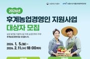 동네방네 김형규 기자 | 담양군이 오는 2월 11일까지 ‘2026년 후계농업경영인 육성사업’ 대상자를 모집한다. ‘후계농업경영인 육성사업’은 농업 발전을 이끌어갈 유망한 예비 농업인과 농업경영인을 발굴해 일정 기간 자금·교육·컨설팅 등을 종합적으로 지원함으로써 정예 농업 인력으로 육성하는 사업이다. 영농교육을 이수하고 영농창업을 계획하거나 농업을 가업으로 승계하고자 하는 미래 농업 인력의 주축이 될 가능성이 높은 인재를 발굴하는 것을 목적으로 한다. 신청 대상은 18세 이상 49세 미만(1976~2008년도 출생자)으로, 영농 경력이 없거나 10년 미만인 농업인이다. 또한 대학의 농업 관련 학과나 농업계 고등학교를 졸업했거나, 시장·군수·구청장이 인정한 농업 교육기관에서 관련 교육을 이수한 경우에 한해 신청할 수 있다. 다만, 올해 산업기능요원 편입 대상자가 아닌 병역 미필자의 경우 군 복무를 완료한 이후에 자금 대출 신청이 가능하다. 사업 신청은 ‘농업e지’ 홈페이지를 통해 온라인으로만 가능하며, 마감일은 2월 11일 오후 6시 정각이다. 이후에는 신규 신청