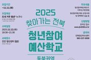 동네방네 김형규 기자 | 전북청년허브센터(전북창조경제혁신센터, 대표이사 박선종)와 진안군청년센터(센터장 김현두)가 공동으로 주관하는‘2025 찾아가는 전북청년참여예산학교’가 오는 11월 12일(수) 오후 6시30분, 진안군청년센터에서 열린다. 이번 교육은 진안·무주·장수 지역의 청년이라면 누구나 참여할 수 있다. ‘청년참여예산제’는 청년이 직접 지역의 정책을 제안하거나 발굴한 사업을 예산에 반영할 수 있도록 하는 제도다. 찾아가는 프로그램을 기획하여 지역 청년의 정책 참여 확대와 청년참여예산제에 대한 이해를 높이기 위해 권역별로 진행된다. 이번 예산학교는 청년들이 지역 현안과 정책 아이디어를 예산과 연계해 직접 제안할 수 있도록 돕는 참여형 프로그램으로 구성됐다. 교육은 ▲청년참여예산제의 기본 개념 ▲정책 제안 실습 등 단계별로 진행되며 나라살림연구소 최승우 책임연구원이 강사로 참여해 시민참여예산 운영 사례와 정책 제안서 작성법을 안내한다. 또한 ChatGPT를 활용한 정책 제안 실습도 함께 진행된다. 이번 교육을 통해 진안·무주·장수 지역 청년들은 서로 소통하고 아이디어를 교류하며, 권역 내 청년