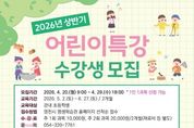 동네방네 김형규 기자 | 영천시 평생학습관(관장 정경자)은 관내 초등학생을 대상으로 ‘2026년 상반기 어린이특강’ 수강생을 20일부터 선착순으로 모집한다. 이번 특강은 아이들이 체험활동을 통해 자연스럽게 배우고 성장할 수 있도록, 신체 활동부터 예술·탐구 활동까지 총 11개의 다양한 프로그램으로 마련됐다. 오는 5월 2일부터 6월 27일까지 2개월간 운영되며, 수강 신청은 평생학습관 누리집에서 가능하다. 수강료는 주 1회 과목 1만원, 주 2회 과목 2만원으로 재료비는 별도다. 평생학습관 관계자는 “아이들이 특강을 통해 다양한 경험을 해보며 세상에 대한 호기심과 자신감을 키워나가길 바란다”며, “앞으로도 아이들의 눈높이에 맞는 다양한 프로그램을 지속적으로 마련해 나가겠다”고 전했다. 한편, 어린이특강에 대한 자세한 사항은 영천시 평생학습관 누리집을 참고하거나, 평생학습관 교육운영팀으로 문의하면 안내받을 수 있다.