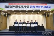 동네방네 김형규 기자 | 강원 남부권 6개 시군(원주·횡성·영월·평창·정선·태백)은 24일 오전 11시, 호텔인터불고 원주에서 국토교통부의 ‘제7차 공항개발 종합계획’에 ‘원주(횡성)공항의 국제화 사업 반영’을 요청하는 공동 건의문을 채택했다. 이날 서명식에는 원강수 원주시장, 김명기 횡성군수, 이상호 태백시장, 최명서 영월군수, 심재국 평창군수, 최승준 정선군수 등 강원 남부권 6개 시군의 시장·군수가 모두 참석해 원주(횡성)공항 국제화 추진에 뜻을 모았다. 이번 공동 건의문 채택은 원주(횡성)공항 국제화가 침체된 강원 남부권 경제를 되살리고 공동 번영을 이끌 핵심 인프라라는 인식을 공유하고, 이에 대한 정부의 적극적인 지원과 조치를 요청하기 위해 마련됐다. 건의문의 주요 내용은 ①강원 남부권의 절실한 지역 현안과 새로운 돌파구 필요성 ②원주(횡성)공항의 경제적 파급 효과 ③국토교통부의 선제적 결단 촉구 등이며, 강원특별자치도를 통해 국토교통부에 전달될 예정이다. 원주(횡성)공항의 시설 개선으로 국제선 유치 여건이 갖춰지면, 강원 남부권 지역 경제 활성화는 물론, 수도권과 비수도권 간 격차 해