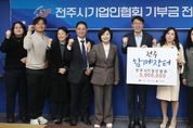 동네방네 김형규 기자 | 전주지역 기업인들이 지역 상권과 산업단지 노동자들을 응원하는 ‘전주함께장터’ 프로젝트에 동참했다. 전주시와 전주시기업인협회(회장 강은주)는 24일 전주시장실에서 우범기 전주시장과 협회 관계자 등이 참석한 가운데 ‘전주함께장터 기부금 전달식’을 가졌다. 이 자리에서 전주시기업인협회는 회원사들의 뜻을 모아 마련한 총 500만 원의 기부금을 시에 전달했다. ‘전주함께장터’ 프로젝트는 기업과 공공기관, 민간단체, 시민 등 다양한 주체와 협력해 지역 소비를 촉진하고, 골목상권과 전통시장, 노동자 등 지역경제의 주요 축을 지원하는 범시민 운동이다. 현재 지역 상권 매출을 높이는 동시에, 나눔 문화를 확산해 지역경제 회복을 도모하는 릴레이 형식으로 추진되고 있다. 이날 후원한 기부금은 ‘전주함께장터’ 프로젝트를 통해 추진 중인 산업단지 근로자 아침밥 제공 사업 등 취약 근로자 복지 지원 등에 활용될 예정이다. 시는 앞으로도 ‘전주함께장터’ 프로젝트를 통해 기업과 시민이 함께하는 착한 소비 운동을 지속적으로 추진하고, 산업단지 근로자 등 노동 취약계층을 응원하는 다양한 프로