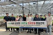 동네방네 김형규 기자 | 봉화군은 지난 6일 임대형 스마트팜단지 입주예정 토마토팀원 10명이 경북 남부지역 스마트 농업시설 현장견학을 다녀왔다고 밝혔다. 이번 견학은 올해 연말 봉성면 창평리에 준공을 앞둔 임대형 스마트팜단지에 입주하는 토마토팀원들의 토마토 재배 실전 노하우 습득과 원활한 육묘수급을 위해 마련됐다. 토마토팀원들은 먼저 영천시 지역특화 임대형 스마트팜 단지를 방문해 영천시 농업기술센터 관계자로부터 스마트팜 시설과 운영현황을 청취하고 입주 청년농업인으로부터 재배기술, 유통 노하우를 전해 듣는 시간을 가졌다. 영천시 지역특화 임대형 스마트팜은 2022년 농식품부 공모사업에 선정 후 올해 초 준공되어 4ha 규모의 유리온실 7개동에 20명의 청년농업인이 입주해 딸기, 토마토, 오이 3개 작물을 재배하고 있다. 이어서 팀원들은 구미시 선산읍에 소재한 도내 최대규모의 중부육묘장을 방문해 대표로부터 서양계 토마토 유망품종 동향과 토마토 모종 육묘기간, 모종관리에 대해 설명을 들었다. 장영숙 농업기술과장은 “금년 내 준공되는 군 임대형 스마트팜단지 입주를 앞둔 팀원들이 정착단계에 있는