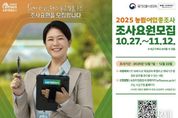 동네방네 김형규 기자 | 남원시는 ‘2025년 농림어업총조사’의 성공적 추진을 위해 조사요원 총 111명 (조사관리요원 15명, 조사원 96명)을 오는 11월 12일까지 모집한다. 이번 조사는 현재 진행 중인 2025 인구주택총조사(10월 22일 ~ 11월 18일)에 이어 실시되는 5년 주기의 전국 단위 통계조사로, 전국 농림어가를 대상으로 그 규모, 분포, 구조 및 경영형태 등을 파악하여 농림어업 정책 수립의 기초자료로 활용되는 중요 조사이며 오는 11월 20일부터 12월 22일까지 실시 할 예정이다. 모집 조사요원은 18세 이상(2007.12.31.이전 출생) 태블릿 PC 등 스마트기기 활용이 가능하고 통계조사에 대한 책임감이 있는 사람이면 누구나 가능하다. 기타 자세한 사항은 남원시청 누리집 및 농림어업총조사 홈페이지를 통해 확인할 수 있으며, 희망자는 남원시청 기획예산과 방문 또는 농림어업총조사 홈페이지에서 인터넷 접수를 통해 신청할 수 있다. 시 관계자는 “농산어민의 좋은 답을 들어 줄 성실하고 책임감 있는 분들의 많은 지원을 바란다.”라고 밝혔다.