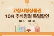 동네방네 김형규 기자 | 고창군이 추석을 맞아 군민 생활안정과 지역경제 활성화를 위해 ‘고창사랑상품권 특별할인 행사’를 진행한다. 이번 행사는 10월 한 달간 진행된다. 이번 특별할인은 △상품권 구매시 10% 선할인 △고창사랑카드 결제시 10% 캐시백 적립을 통해 최대 20% 혜택을 받을 수 있도록 구성됐다. 특히, 월 구매한도를 100만 원까지 확대해 군민들의 혜택을 더욱 강화했다. 예를 들어, 10만원 상품권 구매 시 10%(1만 원) 선할인을 적용받아 9만원에 구매하고, 이후 고창사랑카드로 결제하면 결제금액의 10%가 캐시백으로 적립돼 실질적으로 최대 20% 혜택을 누릴 수 있다. 다만, 선할인(10%)이 적용된 금액은 캐시백 적립 대상에서 제외된다. 심덕섭 고창군수는 “이번 추석 명절 특별 할인을 통해 군민들께는 생활비 부담을 덜어드리고, 지역 소상공인들에게는 매출 증대 효과가 기대된다”며 “특히, 군에서 지급하는 군민활력지원금과 정부의 민생소비쿠폰이 더해져 군민 모두가 더욱 넉넉한 추석 명절을 보내시길 바란다”고 밝혔다. 한편, 고창사랑상품권은 전통시장과 지역 내