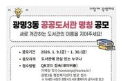 동네방네 김형규 기자 | 광명시가 광명3동 새 도서관의 이름을 지어줄 주인공을 찾는다. 시는 올해 10월 개관 예정인 ‘광명3동 공공도서관’ 명칭 공모를 9일부터 30일까지 22일간 진행한다고 9일 밝혔다. 광명3동 공공도서관은 광명3동 공공복합청사(광명동 104-9) 내 지상 5~6층에 연면적 1천600㎡ 규모로 조성ᅟᅡᆫ다. 어린이·종합 자료실을 비롯해 실감 놀이터, 어린이 창작공간, 강의실, 동아리실 등 전 세대가 함께 이용할 수 있는 복합문화공간으로 운영할 예정이다. 이번 명칭 공모는 도서관이 시민의 일상과 가장 가까운 생활 문화공간으로 자리 잡을 수 있도록, 공간의 성격과 가치를 잘 담아내면서도 모두에게 친숙한 이름을 찾기 위해 마련했다. 명칭의 적합성, 창의성, 대중성 등을 종합적으로 평가해 최우수상 1건(10만 원), 우수상 1건(7만 원), 장려상 1건(5만 원)을 선정하고, 온누리상품권으로 시상할 계획이다. 선정 결과는 오는 2월 중 광명시도서관 누리집에서 공개한다. 명칭 공모는 도서관에 관심 있는 누구나 참여할 수 있다. 온라인 양식을 작성해 제출하거나, 광명3동 행정