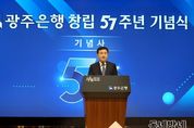 동네방네 김형규 기자 | 광주은행은 20일 본점에서 창립 57주년을 기념하고, 지역경제 발전에 기여한 고객과 은행 발전에 공헌한 직원에게 감사패와 포상을 수여했다. 이번 기념식은 광주은행의 57년 발자취를 돌아보고 미래 100년을 준비하는 전략을 공유하는 자리로 마련됐다. 기념식에는 박지원 국회의원(제22대), 고재유 前 광주광역시장(제8대) 등 지역 주요 인사가 참석해 광주은행의 성장과 지역 발전을 함께 축하했다. 고병일 은행장은 기념사에서 “1968년 창립 이후 광주·전남 대표은행으로 성장할 수 있었던 힘은 고객, 지역민, 그리고 1,700여 임직원의 헌신 덕분”이라며 “광주은행은 언제나 지역의 신뢰를 기반으로 함께 성장해왔다”고 감사의 뜻을 전했다. 이어“국내외 금융환경 변화 속에서 지역경제는 청년층 유출, 고령화, 산업구조 약화 등 구조적 위기에 놓여 있다”며 “지금은 변화에 적응하는 수준을 넘어 지역의 변화를 직접 이끄는 은행으로 역할을 확대해야 한다.”고 강조했다. ■ 광주은행, 미래 100년 준비하는‘4대 핵심 전략’발표 광주은행은 창립 57주년을 맞아 미래 금