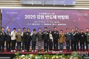 동네방네 김형규 기자 | 강원도민일보(사장 경민현)가 주관하고 강원특별자치도와 원주시가 후원하는 「2025 강원 반도체 박람회」가 11월 6일 오후 3시, 원주시청 로비에서 성황리에 개막했다. 이날 개막식에는 김진태 강원특별자치도지사, 원강수 원주시장, 신경호 교육감, 박정하·송기헌 국회의원 등 주요 인사와 반도체 기업 및 학계 관계자들이 참석했다. 이번 박람회는 강원도에서 처음으로 열리는 반도체 종합 박람회로, 도내 반도체 관련 기업과 교육기관 등 다양한 기관에서 참석한 가운데 ‘미래를 여는 강원의 반도체 혁신’을 주제로 11월 6일부터 7일까지 원주시청 앞 광장 및 지하 다목적홀에서 진행된다. 시청 광장에는 반도체 전주기 홍보관을 비롯하여 공정별 기관 및 관내 주요 반도체 기업관이 마련됐다. 지하 1층에서는 「강원형 반도체 비전 심포지엄」이 개최되며, 연세대·강원대 등 도내 대학 및 특성화고 전시 부스, 시민이 직접 반도체 실습을 체험할 수 있는 XR체험존 등이 마련되어 산업 전문가와 시민이 함께 소통할 수 있도록 구성됐다. 이번 박람회가 원주시에서 열리게 된 것은, 원주가 강원 반도체 산업의