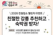 동네방네 김형규 기자 | 강릉시는 2026-2027 강릉 방문의 해를 맞아 국제관광도시 시민실천운동 추진위원회와 함께 오는 3월 1일부터 ‘2026 관광객 추천 친절업소 챌린지’를 본격적으로 시작한다고 밝혔다. 이번 챌린지는 관광객의 생생한 목소리를 통해 신뢰도 높은 친절 업소를 발굴하고, 지역 외식·숙박 업소의 자발적인 친절 문화를 확산시키기 위해 기획됐다. 시는 이를 통해 강릉의 관광 브랜드 이미지를 제고하고 글로벌 수준의 서비스 문화를 정착시켜 ‘국제관광도시’로의 도약을 가속화할 방침이다. 참여 대상은 강릉을 방문하는 모든 관광객으로, 강릉 여행 중 감동적인 서비스를 경험했거나 추천하고 싶은 업소가 있다면 강릉시 관광 홈페이지 ‘비짓강릉’ 내 전용 게시판을 통해 간편하게 추천할 수 있다. 시는 추천된 업소 중 분기별로 외식업소 2개소, 숙박업소 1개소 등 연간 총 12개소를 선정할 예정이다. 선정은 ▲데이터 무결성 검증 ▲현장 실사(친절·정직·청결 지표 점검) ▲국제관광도시 시민실천운동 추진위원회 심의 등 엄격한 3단계 검증 과정을 거쳐 공정하게 이루어진다. 또한 챌