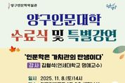 동네방네 김형규 기자 | 양구군은 8일 양구인문학박물관 세미나실에서 인문대학 수료식 및 특별강연을 진행한다. 양구 인문대학은 올해 4월부터 11월까지 매월 1회 ‘조화와 균형의 인문학’을 주제로 운영됐다. 인문학 전문 강의를 통해 군민의 인문학적 소양을 함양하고, 양구군을 인문학 중심도시로 육성하기 위한 기반을 마련하고자 추진됐다. 올해 인문대학에는 총 53명이 접수해 이 중 25명이 수료한다. 수료식에서는 전체 강의의 80% 이상을 이수한 수강생에게 양구군수와 김형석 명예교수 명의의 수료증이 수여된다 수료식 이후에는 김형석 명예교수가 ‘인문학은 가치관의 탄생이다’를 주제로 특별강연을 진행한다. 강연에서는 급변하는 현대사회 속에서 개인의 사유, 가치 판단, 삶의 태도 형성에 있어 인문학이 갖는 의미를 되짚어볼 예정이다. 진행된 강좌 △고미술과 현대미술의 균형적 이해 △소통을 위한 공감 독서법 △진심을 담은 옛 사람들의 소통법 △기계와 짐승 사이에서 △덜 소비하고 더 나누는 삶 △어머니의 밥상을 찾아서: ‘귀향’ 등에서 다양한 인문학적 관점을 다뤄 수강생들의 높은 호응을 받았다. 임경빈