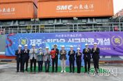 동네방네 김형규 기자 | 제주항에 57년 만에 첫 국제 정기 컨테이너선이 입항했다. 물류비는 62% 절감되고 운송 시간은 최소 2일로 단축돼 제주 기업들의 수출입 경쟁력이 크게 높아질 전망이다. 제주특별자치도는 18일 오후 2시 제주항 국제여객터미널에서 ‘제주–칭다오 정기 컨테이너선 첫 입항식’을 열고 제주 해상물류의 새 시대 개막을 선언했다. 첫 입항 선박 ‘SMC 르자오’호에는 페트칩, 기계장비 등 약 40TEU의 수입 화물이 실렸으며, 제주에서는 수산물 가공품, 삼다수 등 10TEU 규모의 제품이 중국으로 수출된다. 이번 항로 개설은 1968년 제주항이 무역항으로 지정된 이후 57년 만의 첫 정기 국제항로 개설로, 제주가 글로벌 물류 거점으로 도약하는 역사적 이정표가 됐다. 해양수산부가 지난 7월 말 항로 개설을 승인하고, 8월 운영선사를 확정한 뒤 10월 초 운항계획 신고 절차를 마치면서 본격 운항에 들어갔다. 오는 22일부터는 매주 수요일 오전 정기적으로 제주항에 입항할 예정이다. 이날 입항식에는 오영훈 제주도지사를 비롯해 이상봉 제주도의회 의장, 도내 CIQ(세관․출입국․검역
