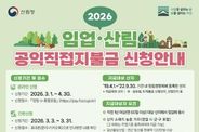 동네방네 김형규 기자 | 봉화군은 산림의 공익기능 증진과 임업인의 소득 안정을 위해 3월 4일부터 4월 30일까지 ‘2026년 임업·산림 공익직접지불금’ 신청을 접수한다고 밝혔다. 임업직불제는 소중한 산림을 가꾸는 임업인의 낮은 소득을 보전하기 위해 도입된 제도로, 지급 대상은 2019년 4월 1일부터 2022년 9월 30일까지 임야 대상 농업경영체 등록을 완료한 산지에서 실제 임업에 종사하는 임업인과 농업법인이다. 특히 올해는 임업인의 편의를 위해 비대면 신청 서비스를 대폭 강화했다. 온라인 신청은 3월 4일부터 4월 30일까지 ‘임업-in 통합포털’을 통해 상시 가능하며, 2025년 직불금 등록 정보와 변경 사항이 없는 임가 중 요건을 충족한 대상자는 카카오톡이나 문자로 발송된 링크를 통해 ‘모바일 간편 신청’(3.4.~3.31.)을 이용할 수 있다. 온라인이나 모바일 이용이 어려운 경우에는 4월 1일부터 4월 30일까지 산지 면적이 가장 넓은 소재지의 읍·면사무소를 방문해 신청하면 된다. 직불금을 신청하고자 하는 임업인은 종사 실적(연간 90일 이상) 및 임산물 판매 실적(연간 120만원 이상