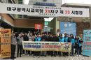 동네방네 김형규 기자 | 대구 서구 청소년지도협의회(회장 황만태)는 지난 12일, 서부고등학교 정문에서 학생들의 수능 예비 소집일 시간에 맞춰 수험생 응원 및 선도·보호 합동 캠페인을 실시했다. 이날 캠페인은‘조급해하지 마! 너 자신을 믿어!!’라는 슬로건 아래 서구청소년지도협의회(회장 황만태), 서구청소년상담복지센터(센터장 강진희), 서부경찰서 여성청소년과(과장 김선미)에서 30여 명이 참여한 가운데, 대입 수학능력시험을 앞둔 수험생들의 격려와 청소년 선도·보호를 위해 현수막, 피켓을 들고 학생들에게 자체 제작한 응원 물품을 나누어 주는 등의 활동으로 진행됐다. 서구 청소년지도협의회 회장은“힘든 수험 생활을 견뎌낸 학생들이 긴장하지 말고, 자신 있게 시험에 임한다면 그동안의 노력이 좋은 결과로 이어질 것을 믿는다. 앞으로도 청소년의 건강한 성장과 선도·보호를 위해 최선을 다하겠다.”라고 밝혔다.