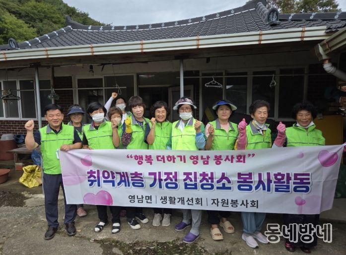 영남면 부녀회, 생활개선회, 새마을협의회 등으로 구성된 ‘행복더하기 영남봉사회’(일명 영남봉사회)는 영남면 신성마을 주민의 가정을 찾아 집 안 구석구석 청소를 진행했다.