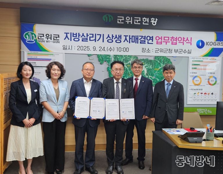 동네방네 김형규 기자 | 군위군과 한국가스공사(사장 최연혜)는 9월 24일 수요일 오전 10시 군위군청 부군수실에서 지방살리기 상생 자매결연 업무협약을 체결했다. 지방살리기 상생 자매결연 업무협약은 비수도권 인구감소지역의 경제 활성화와 인구 유입을 위해 중앙정부와 공공기관, 지자체가 협력하는 공식 협약이다.