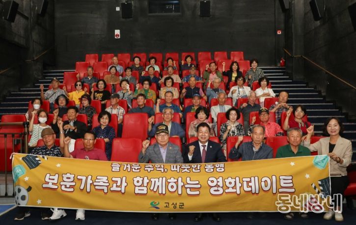 동네방네 김형규 기자 | 고성군은 9월 23일, CGV 고성점에서 관내 8개 보훈단체 회원 50명이 참석한 가운데'문화가 있는 날!'맞이 ‘보훈가족과 함께하는 영화데이트’를 진행했다.