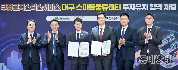 동네방네 김형규 기자 | 대구광역시는 9월 24일 오후 4시 30분, 시청 동인청사 2층 상황실에서 국내 택배부문 1위 기업인 ‘쿠팡로지스틱스서비스(유)’(대표 홍용준, 이하 ‘쿠팡로지스틱스서비스’)와 수성알파시티 내 첨단 스마트물류센터 구축을 위한 투자유치 협약을 체결했다.
