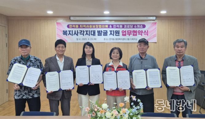 동네방네 김형규 기자 | 인천 동구 만석동 지역사회보장협의체(민간위원장 김은희)는 지난 23일 관내 경로당(만석동 제1경로당 등 6개소)과 복지사각지대 위기가구 발굴·지원 위한 업무협약을 체결했다고 밝혔다.
