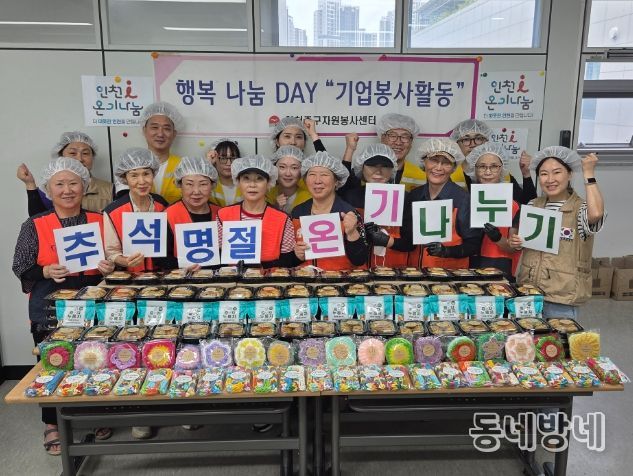 동네방네 김형규 기자 | 인천중구자원봉사센터는 민족 최대 명절인 추석을 맞아 지난 24일 인천공항에너지㈜(대표이사 이경용) 임직원과 함께 ‘온기 나눔 캠페인’과 연계한 ‘추석 명절 음식 나눔 행사’를 진행했다고 밝혔다.