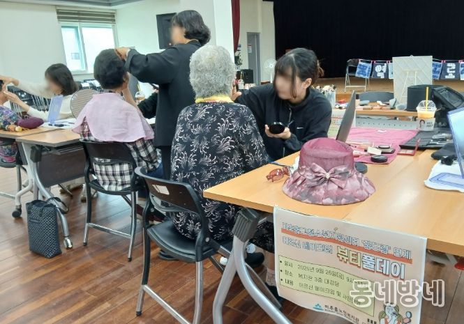 동네방네 김형규 기자 | 인천 미추홀구학교밖청소년지원센터는 지난 26일 직업훈련을 받은 학교 밖 청소년 6명이 어르신을 대상으로 메이크업과 추억을 남길 수 있는 기념사진 촬영을 진행했다.