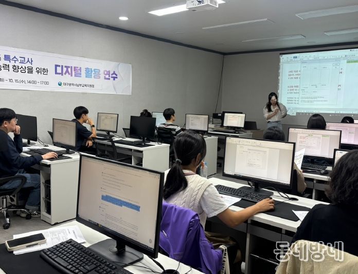 동네방네 김형규 기자 | 대구남부교육지원청은 10월 14일과 15일 이틀간 새빛캐드컴퓨터학원에서 남부특수교육지원센터 교사 15명을 대상으로 디지털 활용 연수를 진행했다고 밝혔다.