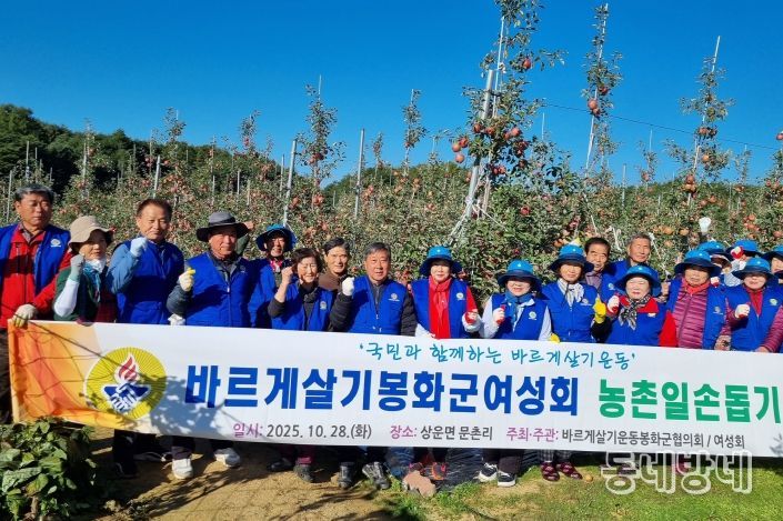 이날 봉사는 바르게살기운동 봉화군협의회 여성회 주관으로, 회원 40여 명이 참여해 사과 수확과 선별작업을 함께하며 농가의 일손을 보탰다.