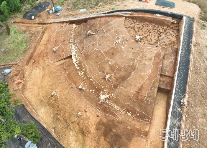 동네방네 김형규 기자 | 경상남도는 31일 고성읍 기월리 일원에서 진행 중인 고성 송학동 고분군 14호분 2차 발굴조사 결과, 가야권역 내 최대 규모의 봉분 구조와 정교한 축조공정이 새롭게 밝혀졌다고 밝혔다.