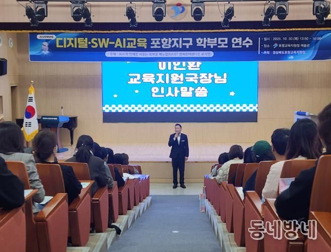 동네방네 김형규 기자 | 포항교육지원청은 10월 30일 14:00~16:00 포항교육지원청 여울관에서 디지털․SW-AI교육 포항지구 학부모 연수를 개최했다.