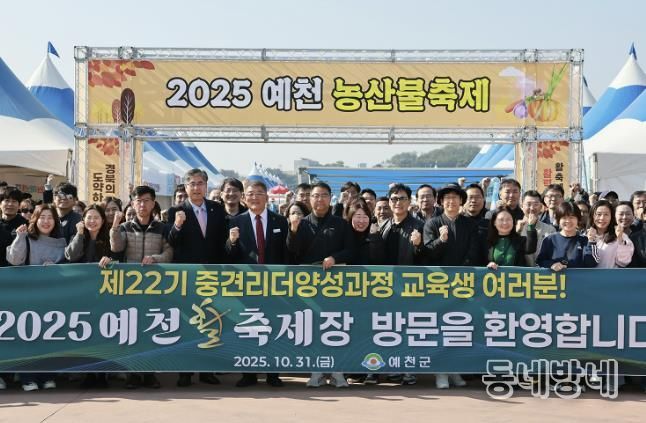 동네방네 김형규 기자 | 예천군은 31일, 경상북도 인재개발원 제22기 중견리더양성과정 교육생 113명이 한천체육공원을 찾아 ‘2025 예천활축제·농산물축제’를 둘러보고 주요 프로그램을 체험했다고 밝혔다.