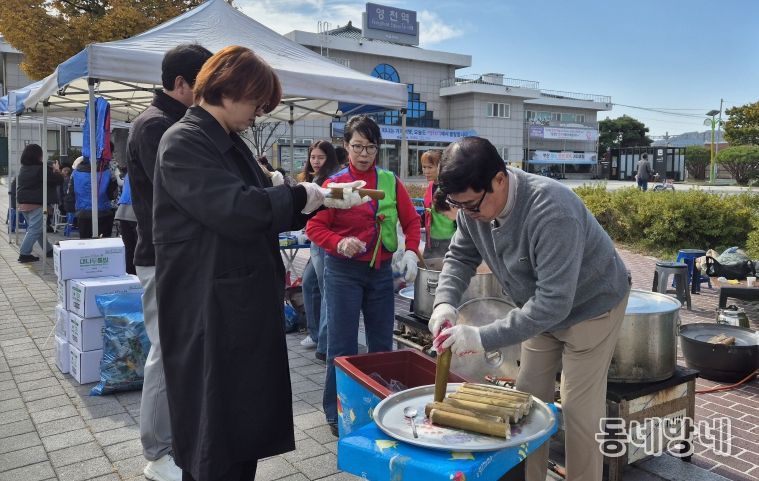 이날 봉사에는 단원 10여 명이 참여해 이른 아침부터 정성껏 준비한 소고기국, 대통밥, 김치 등으로 따뜻한 한 끼 식사를 차렸으며, 시민 100여 명에 대접해 큰 호응을 얻었다.