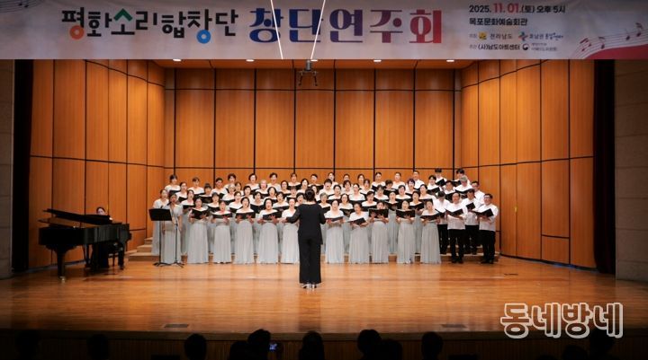 동네방네 김형규 기자 | 전라남도는 분단의 아픔을 치유하고, 한반도 평화와 화합 메시지를 전달하는 ‘전남도 평화소리합창단’ 창단 연주회가 1일 목포문화예술회관에서 열려 지역민과 북한이탈주민, 이북도민이 음악으로 하나가 됐다고 밝혔다.