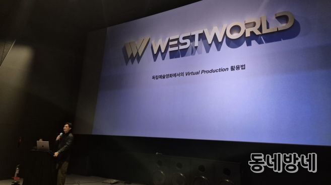 두 번째 세션에서 버추얼프로덕션 전문기업 웨스트월드의 허동혁 본부장은 실제 독립예술영화 제작 현장에서 버추얼프로덕션을 지원하고 촬영해 온 사례를 중심으로 발표를 진행했다.