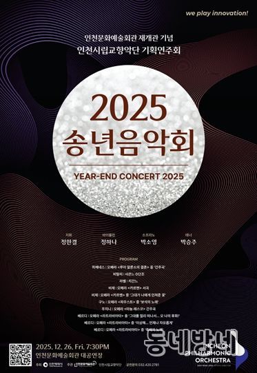 동네방네 김형규 기자 | 인천시립교향악단이 한 해의 마지막을 화려하게 장식할 인천문화예술회관 재개관 기념 기획연주회 〈2025 송년음악회〉의 프로그램과 티켓 예매 일정을 전격 공개했다.