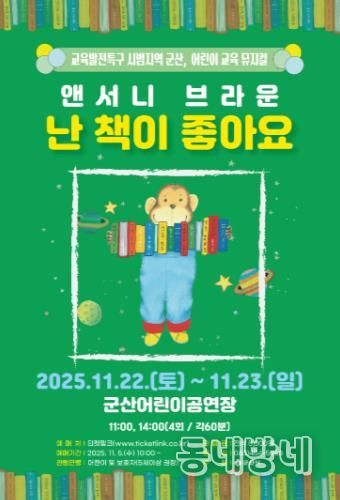 동네방네 김형규 기자 | 군산시는 오는 22일~23일 이틀간 군산어린이공연장에서 어린이 교육 뮤지컬 ‘난 책이 좋아요’를 공연한다고 밝혔다.